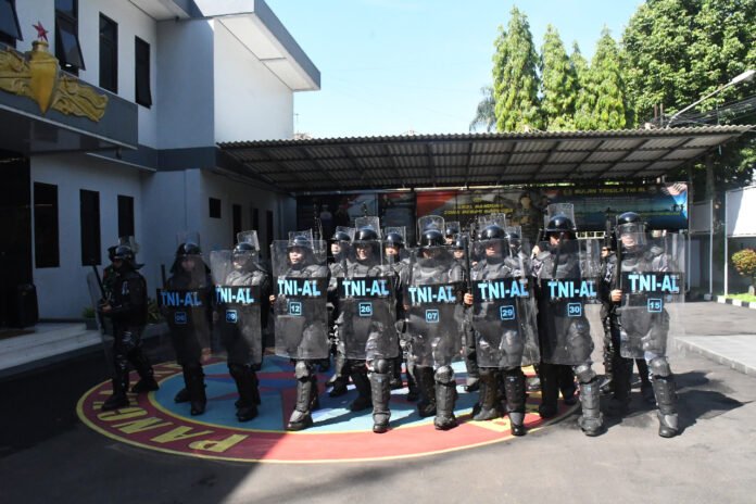 ACTUALNEWS.ID, Bandung,- Saling dorong dan sempat suruh, aksi unjuk rasa warga di depan Markas Komando Pangkalan TNI Angkatan Laut (AL) Bandung, berhasil dihalau Tim Pengendali Huru-Hara (PHH) Lanal Bandung, Jum’at (14/10/2022).