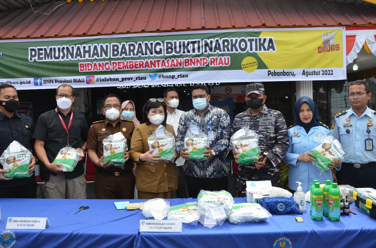 Pemusnaan barang bukti narkoba berupa sabu-sabu dengan berat bersih 12.970,67 gram tangkapan Tim F1QR Lanal Dumai bersama Tim Satgas Ops Intelmar Lantamal I dan narkoba berupa Ganja dengan berat bersih 218,75 gram yang ditangkap oleh BNN Kota Pekanbaru. Dalam pemusnahan narkoba tersebut juga dihadirkan 2 (dua) orang tersangka atas nama HS dan LD penyelundup narkoba jenis sabu-sabu.