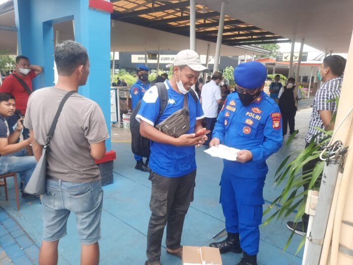 IPTU Gomgom selaku Perwira Pengawas Polres Kepulauan Seribu mengimbau kepada seluruh penumpang untuk mewajibkan seluruh penumpang agar scan PeduliLindungi serta menerapkan protokol kesehatan secara ketat.