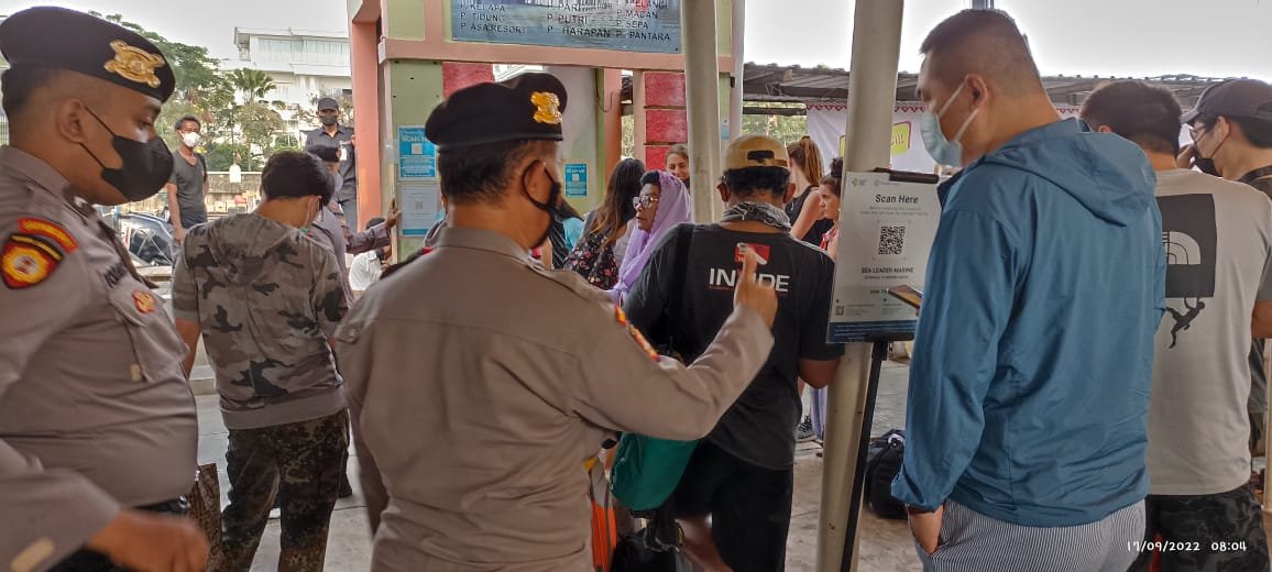 AKP Abdul Kadir, S.H. selaku Perwira Pengawas Polres Kepulauan Seribu memberikan imbauan kepada seluruh penumpang untuk mewajibkan seluruh penumpang untuk scan PeduliLindungi serta menerapkan protokol kesehatan secara ketat.