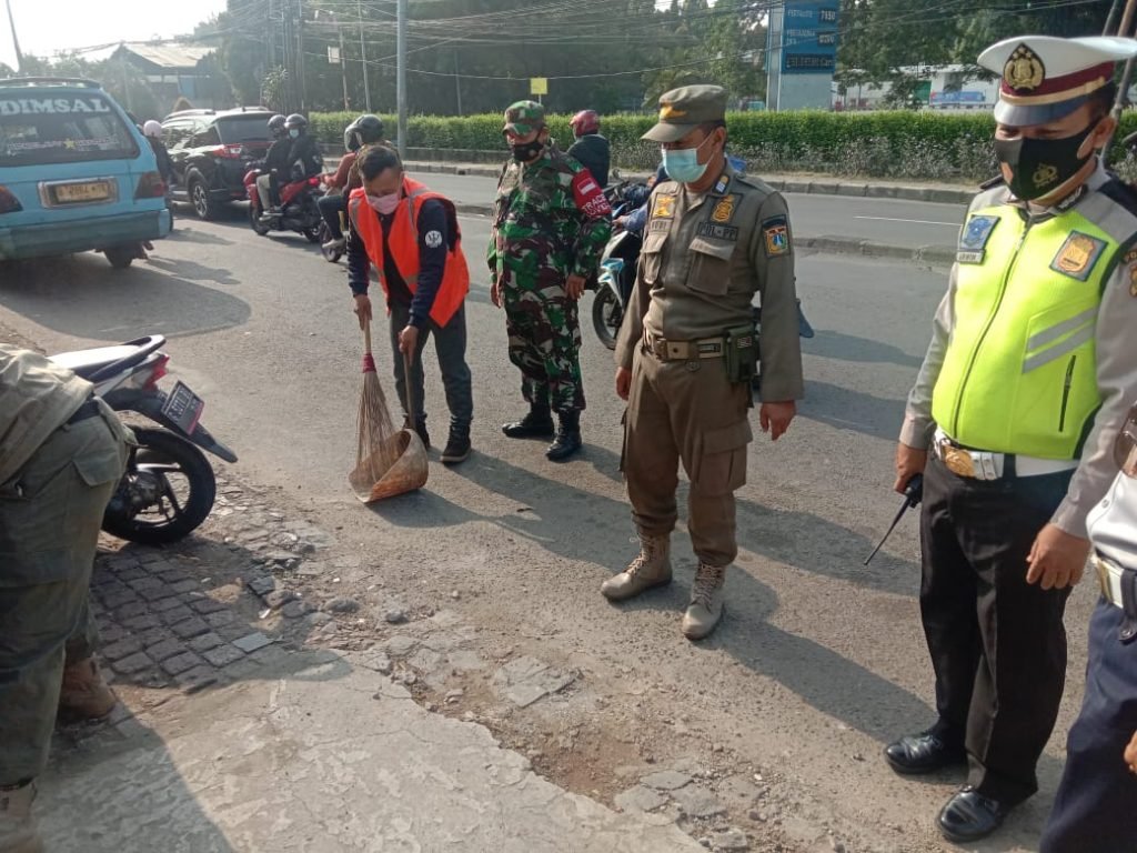 Dari beberapa orang pengendara ada yang patuh dalam mematuhi aturan PPKM Mikro dan sejumlah pengendara motor lainnya tidak menggunakan masker di data dan ditindak tegas sesuai aturan yang berlaku dengan tindakan administrasi menyapu jalan dilokasi Pos pantau.
