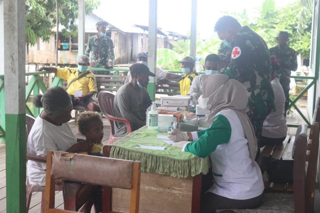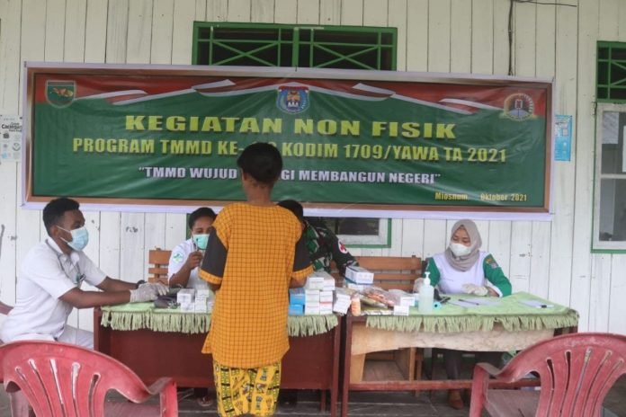 ACTUALNEWS.ID, Yapen – Satgas TMMD Ke-112 Kodim 1709/Yawa menggelar kegiatan Pengobatan Massal dalam rangkaian kegiatan non fisik TMMD Ke-112 Kodim 1709/Yawa bagi seluruh lapisan masyarakat bertempat di Puskesmas Kampung Miosnum Distrik Pulau Yerui Kab. Kepulauan Yapen Politeknik Kesehatan Serui, Kamis (07/10/2021).