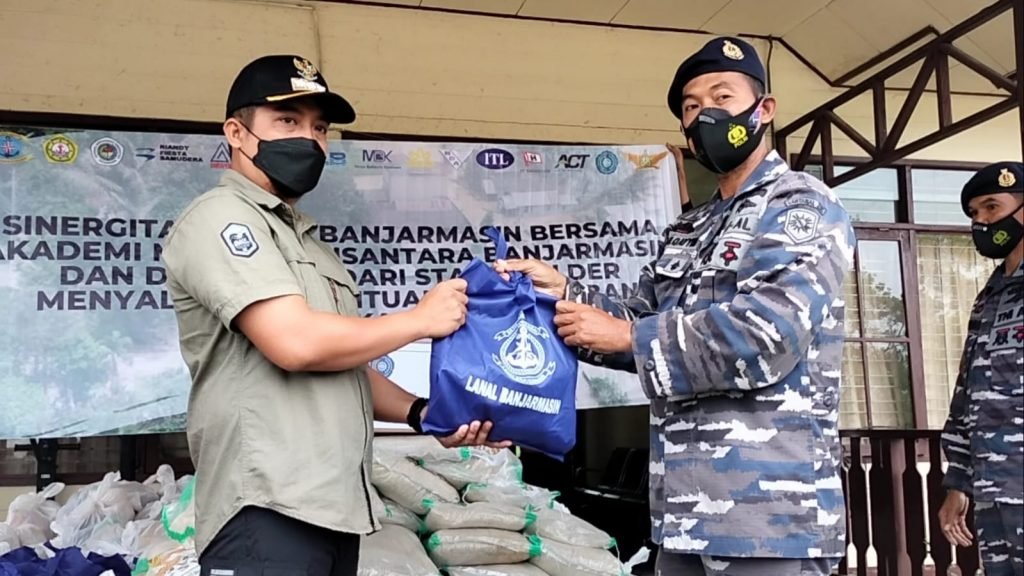 Dari pihak Komandan Lanal Banjarmasin,yang diwakili oleh Pasminlog Lanal Banjarmasin Kapten Laut (T) Andi Zulmuqayyim bersama AMNUS dan ACT Cab. Banjarmasin menyerahkan Bantuan Sembako untuk korban banjir kepada Camat Kamipang Bpk. Ade Irwan, S.STP., M.A.P. selaku ketua Satgas yang nantinya akan di distribusikan kepada masyarakat yang terdampak banjir.