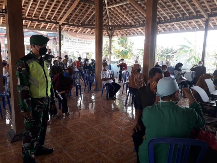 Demi menjaga keamanan dan pelaksanaan vaksinasi Covid-19 masyarakat di desa binaannya, personel Babinsa bersama aparat lain seperti Polsek, Satpol PP aktif membantu tim medis, serta memberikan pemahaman kepada masyarakat bahwa vaksinasi pasti aman dan halal untuk digunakan.