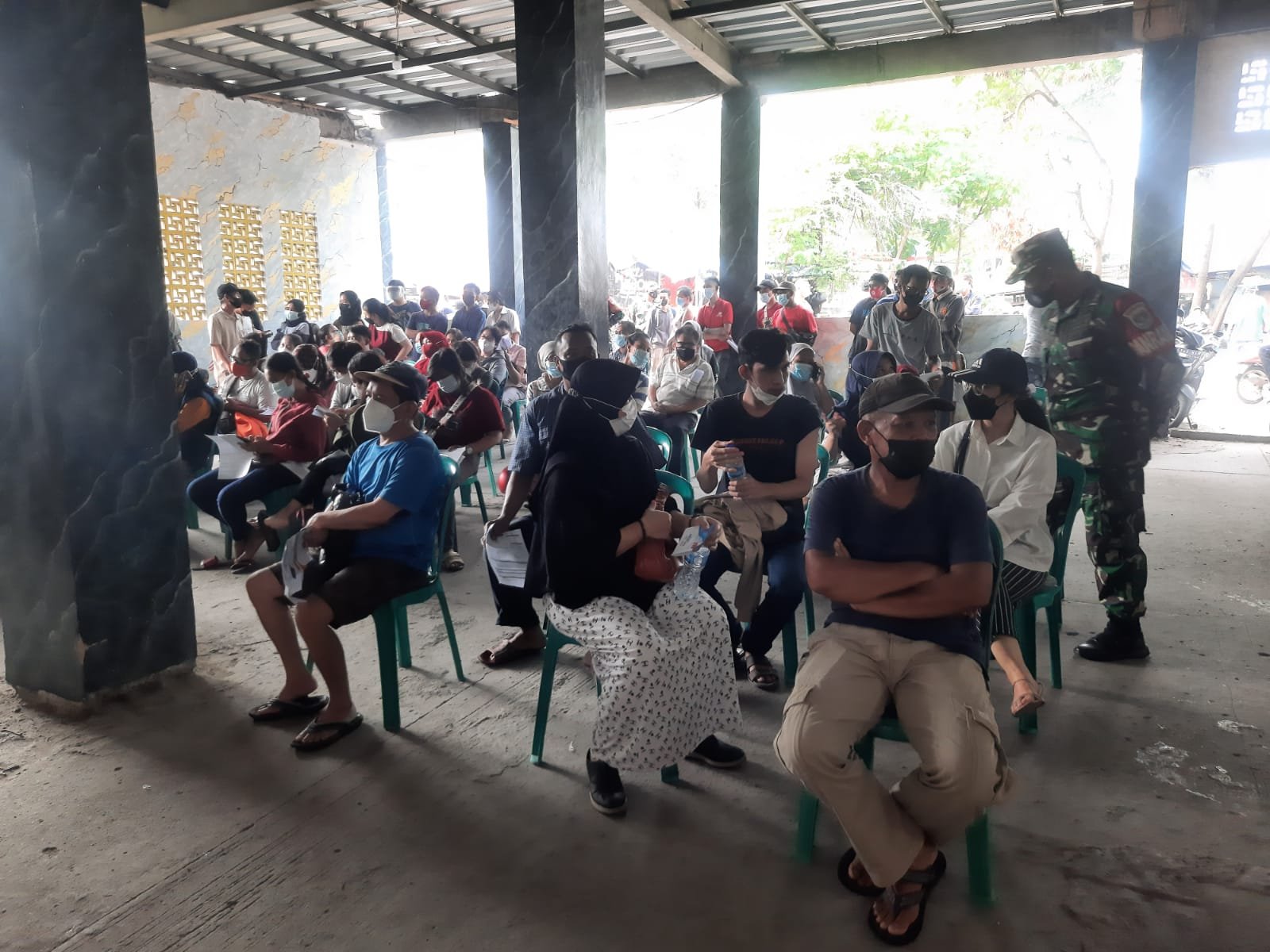 Serbuan Vaksinasi TNI dilaksanakan di Masjid Jami Al Ikhlas jalan Jembatan Besi Raya Rt 01 Rw 05 Kelurahan Jembatan Besi Kecamatan Tambora, Jakarta Barat.Minggu (13/9)