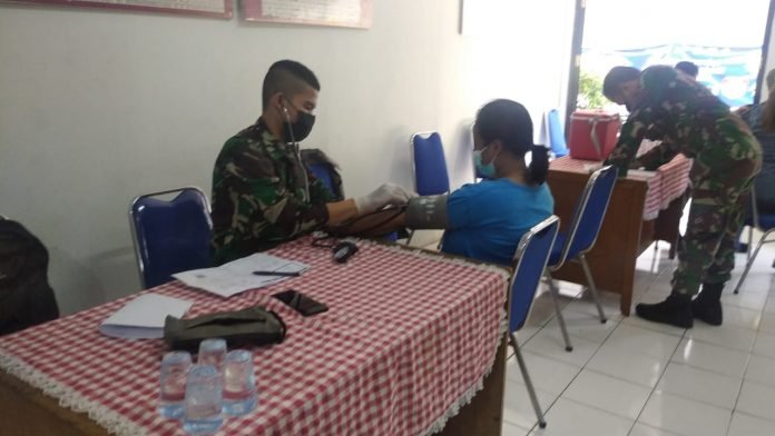 “Hari ini jumlah pendaftar ada 78 orang, tervaksin 70 orang dan tertunda 8 orang karena Hipertensi”. Terang Danramil
