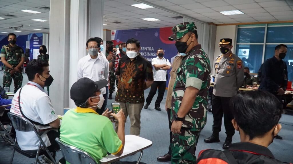 ACTUALNEWS.ID, Kodam Jaya_Tangerang – Menindaklanjuti arahan pemerintah tentang percepatan Vaksinasi pada masyarakat, Pangdam Jaya/Jayakarta Mayjen TNI Untung Budiharto melakukan peninjauan program vaksinasi bertempat di PT. Mayora group. Jl. Raya Serang Kel. Bitung Cikupa. Kab Tangerang, Sabtu (26/02/2022).