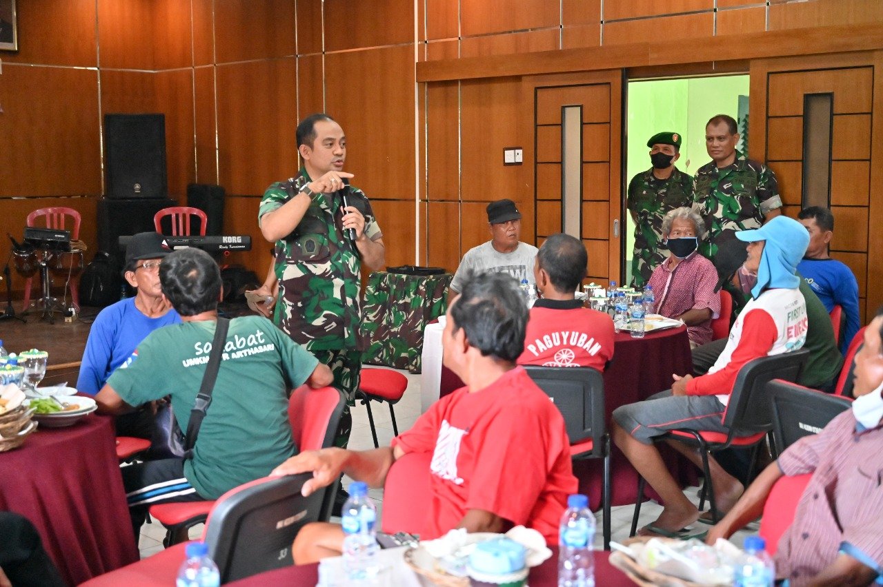Suasana kebersamaan dan keakraban langsung tercipta dalam acara makan bersama keluarga besar Kodim 0726/Sukoharjo dengan tukang becak, pemulung dan petugas kebersihan yang ada di sekitar Makodim Sukoharjo tersebut.
