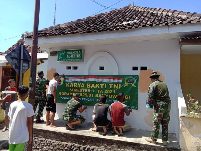 ACTUALNEWS.ID, Banyuwangi. Sebagai bentuk wujud pengabdian kemanunggalan TNI Bersama Rakyat, betul-betul diwujudkan oleh Personel Koramil 0825/01 Banyuwangi bersama Warga Lingkungan Krajan Selatan Kelurahan Tukangkayu Banyuwangi melaksanakan Karya Bakti Pengecatan Musholla Al-Ikhlas, Kamis, 10/06/2021.