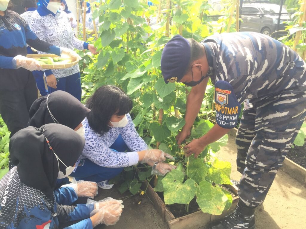 Pada kesempatan yang sama, Ketua Cabang 7 Korcab I DJA I Ny. Aan Sebayang juga memimpin panen sayuran sawi di Kebun Ketahanan Pangan Jalasenastri di Komplek Lumba-Lumba.