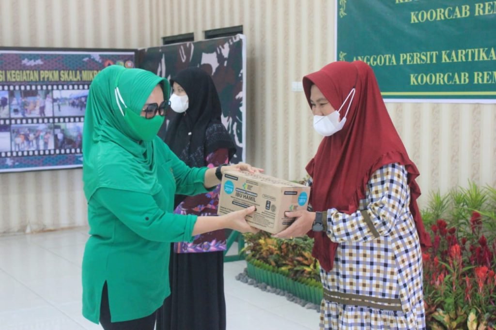 Bantuan itu diserahkan kepada anggota Persit Kodim 1016/Plk yakni Ny. Sertu Defrianto, Ny. Serda Wasito dan Ny. Kopda Anggi.