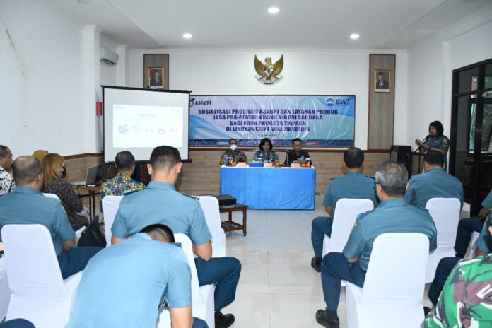 ACTUALNEWS.ID, Bandung,- Prajurit dan Segenap Pegawai Negeri Sipil (PNS) Lanal Bandung menerima Sosialisasi Program ASABRI dan Layanan Produk Jasa Pra-Pensiun Bank Wori Saudara bagi para anggota TNI/ASN di Lingkungan Lanal Bandung, bertempat di Aula Mako Lanal Bandung, Jalan Aria Jipang No. 8 Kota Bandung, Kamis (04/08/2022). Kegiatan tersebut dihadiri langsung oleh Komandan Lanal Bandung Kolonel Laut (KH/W) Dr. Renny Setiowati, S.T., M.Sc., M.Tr.Hanla.