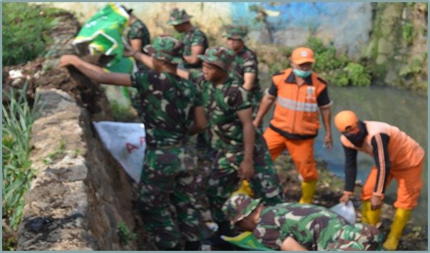 Letkol Hirta menjelaskan,Kegiatan ini meliputi pembersihan ranting – ranting yg menyumbat saluran air di dekat permukiman masyarakat. Air kiriman dari Bogor sangat tidak bisa diduga datangnya.