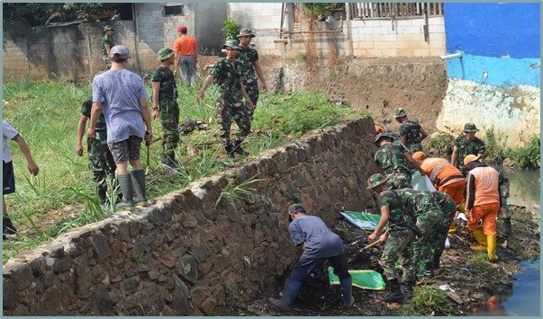 Letkol Hirta menjelaskan,Kegiatan ini meliputi pembersihan ranting – ranting yg menyumbat saluran air di dekat permukiman masyarakat. Air kiriman dari Bogor sangat tidak bisa diduga datangnya.