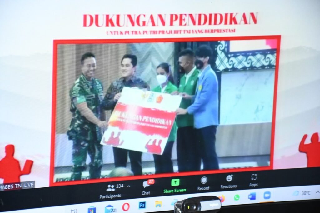 Kegiatan tersebut dilaksanakan di GOR Ahmad Yani Mabes TNI Cilangkap Jakarta Timur secara off line dengan pimpinan Panglima TNI dan Menteri BUMN, diikuti 65 orang peserta terdiri dari TNI AD 20 orang, TNI AL 15 orang, dan TNI AU 15 orang, serta Denma Mabes TNI 15 orang. Untuk Dansat/Pangkotama TNI yang berada di Wilayah Ibukota Jakarta, melaksanakan secara virtual melalui video conference dan menghadirkan Mahasiswa Penerima Dana Bantuan Pendidikan dari BUMN, serta orang tua dan Pejabat BUMN.