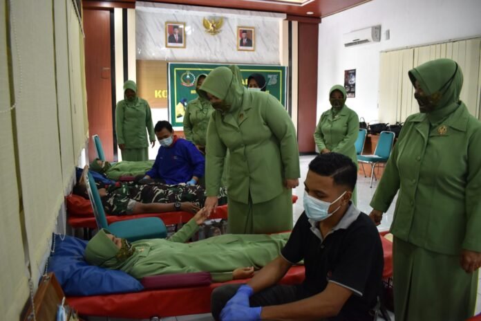 ACTUALNEWS.ID, Sragen – Akhir akhir ini PMI Sragen mengeluhkan stok darah yang menipis, terutama golongan darah A dan AB. Kodim 0725/Sragen merespon positif dengan menggelar donor darah bagi anggota TNI dan Persit yang bergolongan darah A dan AB. Donor darah kodim Sragen di ikuti puluhan peserta baik TNI, Persit dan Ormas. Donor darah dilaksanakan di Ruang data Makodim Sragen. Jumat, 25/03/2022.