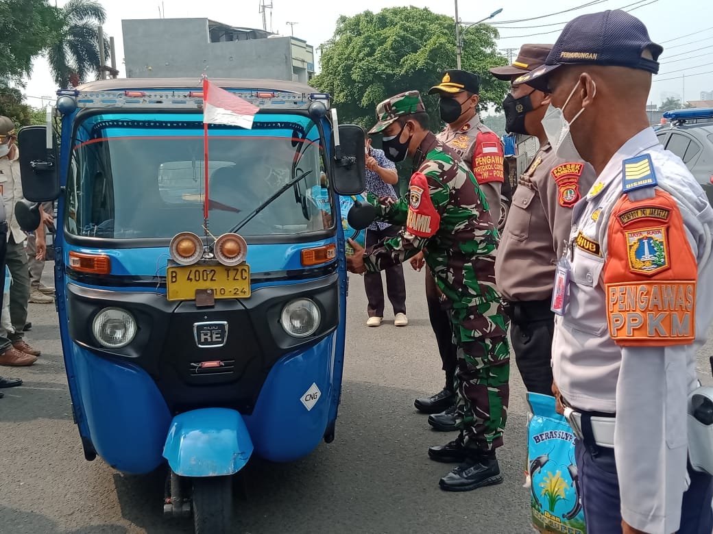 ACTUALNEWS.ID, Jakarta – Untuk meringankan beban di masa PPKM level 3 dalam situasi pandemi Covid-19 tiga pilar kelurahan Jembatan Besi salurkan bantuan paket sembako dari Polda Metro Jaya bagi pengemudi bajaj dan Ojek online