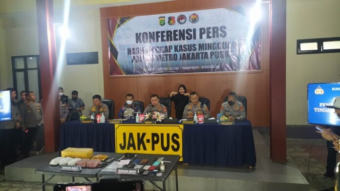 Dalam jumpa pers yang gelar di Polres Metro Jakarta Pusat Kapolda didampingi Kabidhumas, Kapolres Metro Jakpus, Dirresnarkoba, Kabidpropam. Jumat (14/10/2022).