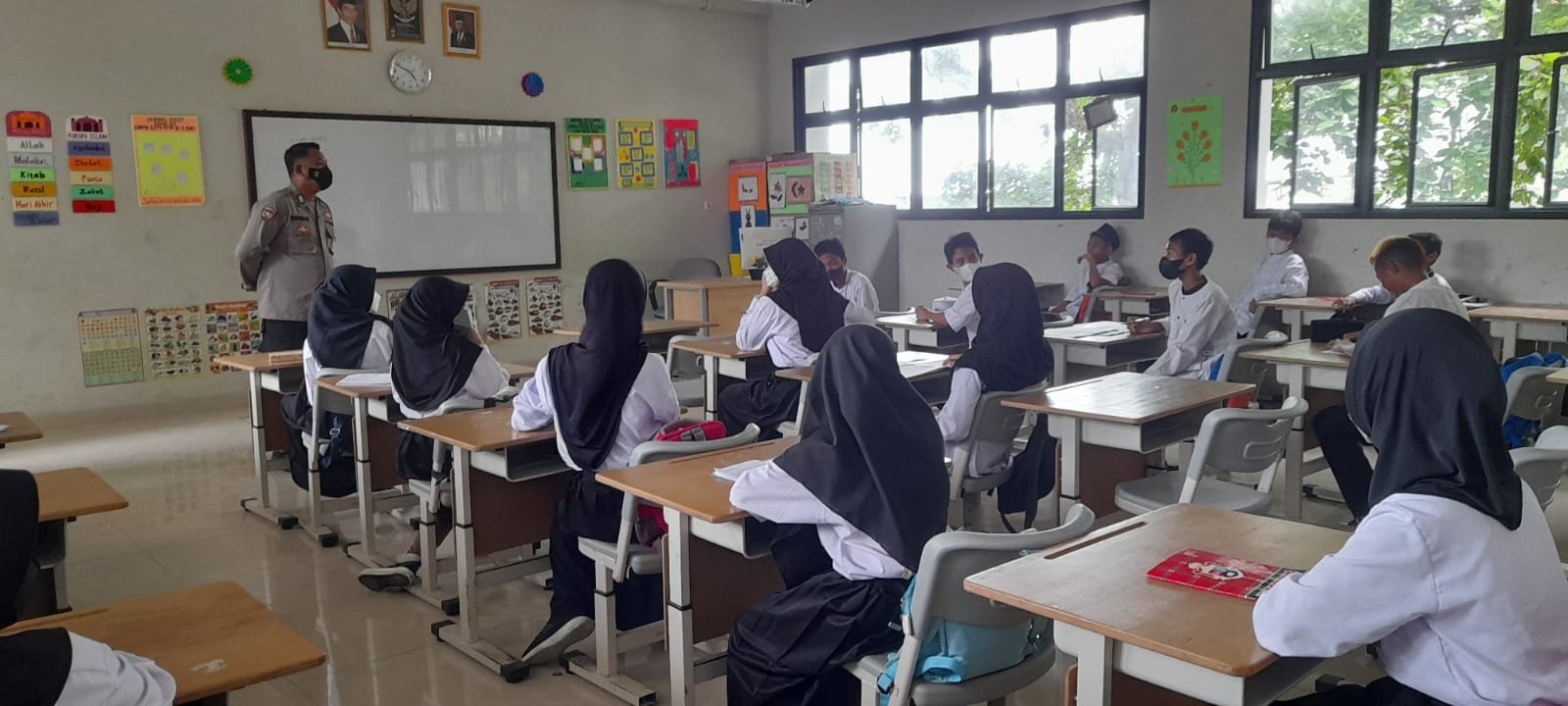 Polres Kepulauan Seribu melalui anggota Bhabinkamtibmas Pulau Pari, Polsek Kepulauan Seribu Selatan, Polres Kepulauan Seribu Bripka Khohim Chovivi melaksanakan kegiatan Police Goes to School di SMPN Satu Atap Pulau Pari, Senin (24/10/2022).
