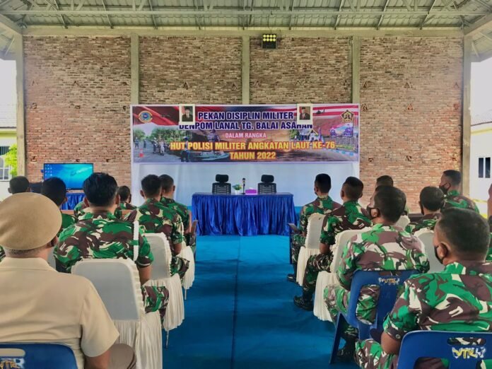 ACTUALNEWS.ID, Tanjung Balai – Dalam rangka menyambut Hari Ulang Tahun (HUT) TNI Ke-76 Satuan Polisi Militer Angkatan Laut, Lanal Tanjung Balai Asahan menggelar pekan disiplin Pemaparan Hukum UU Nomor 25 tahun 2014 tentang Hukum Disiplin Militer dan UU Nomor 31 Peradilan Militer guna menambah pengetahuan prajurit yang dilaksanakan di Gedung Serba Guna Mako Lanal Tanjung Balai Asahan, Kamis (24/2/2022).