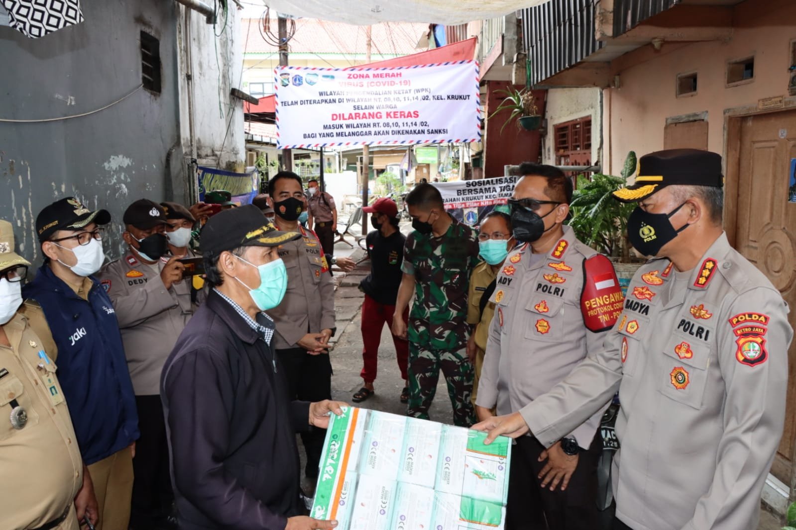 ACTUALNEWS.ID, Jakarta – Polres Metro Jakarta Barat memberikan bantuan berupa bahan makanan kepada warga kelurahan Krukut, Tamansari yang tengah menjalankan micro lockdown.