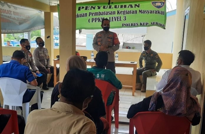 Polres Kep Seribu Beri Edukasi PPKM Level3 Kepada Warga Pulau Lancang Kep Seribu Selatan