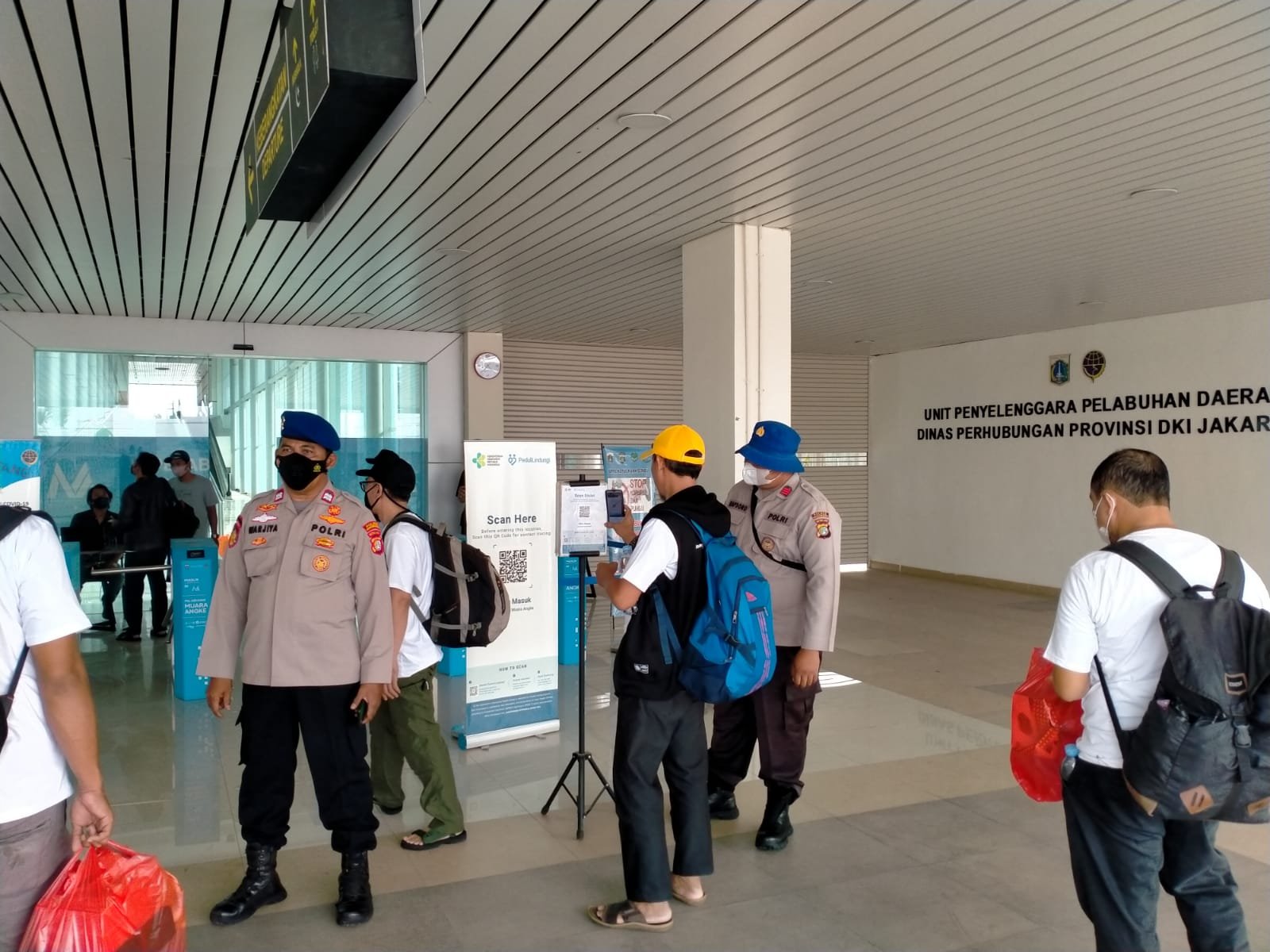 “146 penumpang yang akan masuk ke area dermaga dan akan menyeberang ke wilayah Kepulauan Seribu diwajibkan untuk scan dan menunjukkan hasil scan PeduliLindunginya kepada petugas ,” ujar Heru.