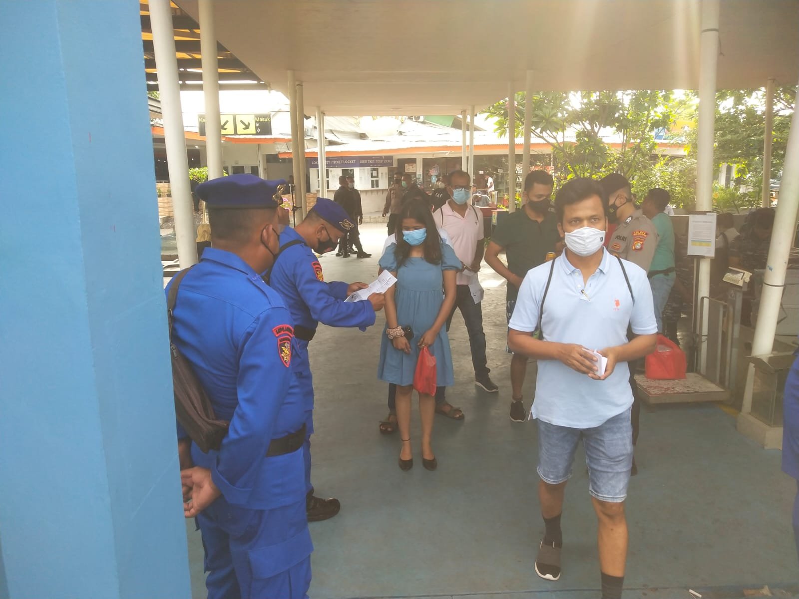 AKP Agus TC selaku Perwira Pengawas Polres Kepulauan Seribu dan anggota yang melaksanakan pengamanan dermaga, mewajibkan seluruh penumpang untuk menunjukkan hasil scan aplikasi PeduliLindungi.