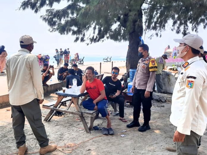 Saat menemukan warga dan wisatawan yang melanggar aturan protokol kesehatan oleh aparat gabungan dilakukan peneguran, pencatatan dan diberikan imbauan agar tetap menerapkan protokol kesehatan, menjalani pola hidup sehat dan melengkapi vaksin.