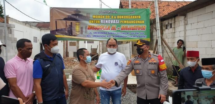 Di ujung kegiatan Kompol Binsar H Sianturi juga memberikan bantuan 20 sak semen untuk pembangunan rumah ibadah (musholla) Al Mujahidin di kampung sawah balong Rt 006/04 Srengseng kembangan Jakarta Barat yang sedang dalam proses pembangunan
