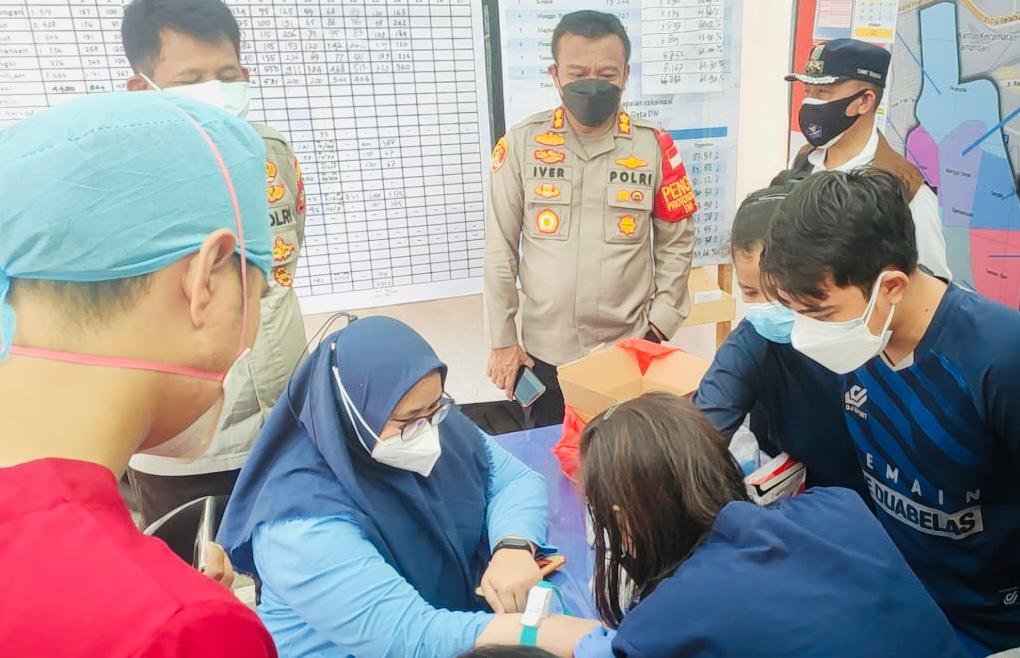 Polsek Metro Tamansari bersama 3 Pilar Berikan Suntikan Vitamin kepada Relawan Vaksinasi Merdeka