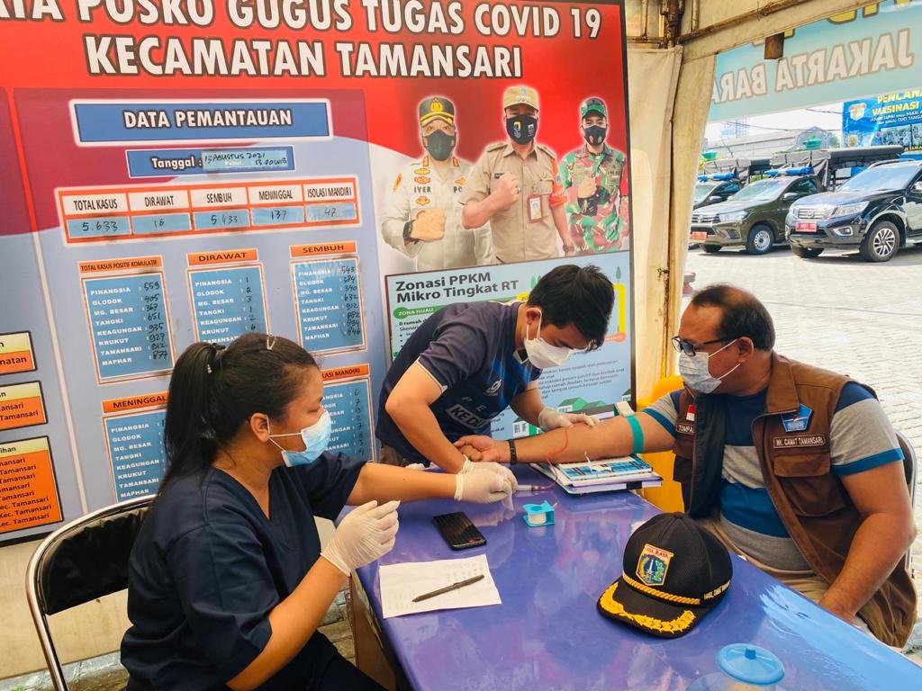 Polsek Metro Tamansari dengan didukung 4 Pilar Kec Tamansari, di hari ke 14 (14 Agustus 2021) berhasil mencapai angka 10.233 warga Tervaksin, dari jumlah Sasaran warga Vaksinasi yg ditentukan oleh Posko Polda Metro Jaya diawal program yaitu sejumlah 7.659 orang tervaksinasi