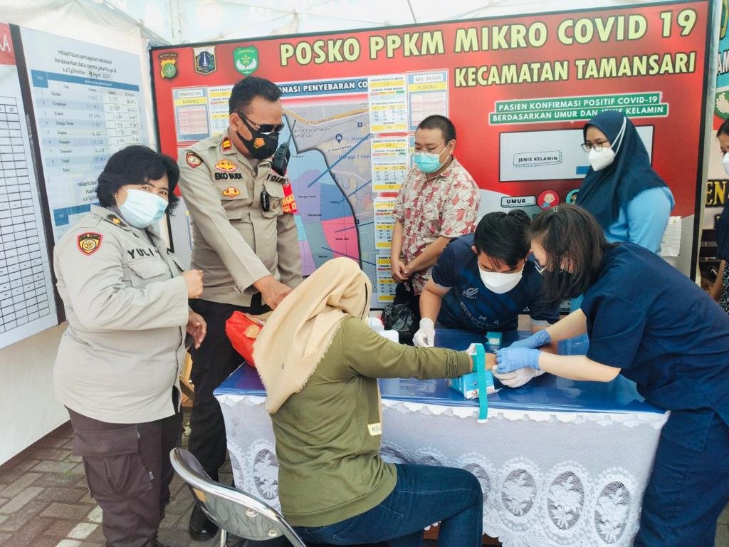 Polsek Metro Tamansari bersama 3 Pilar Berikan Suntikan Vitamin kepada Relawan Vaksinasi Merdeka