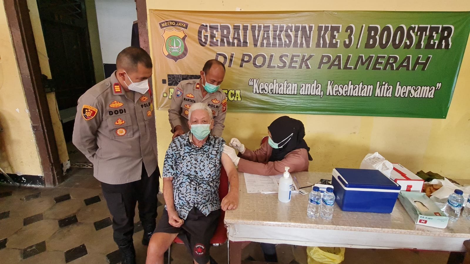 ACTUALNEWS.ID, Jakarta – Polsek Palmerah Jakarta Barat sigap membantu warga masyarakat yang akan memperoleh vaksinasi di gerai vaksinasi yang digelar di gedung tinggi mako polsek palmerah, jl palmerah barat 3 palmerah Jakarta barat, Kamis, 24/2/2022