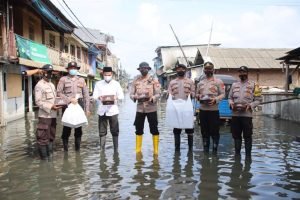 Seto lebih lanjut jelaskan, dan selain itu meringankan dan membantu disaat makan siang, dan wujud Polri kepada masyarakat tetap memberi perhatian dan pelayanan disaat musibah banjir rob ini.” jelas Seto.