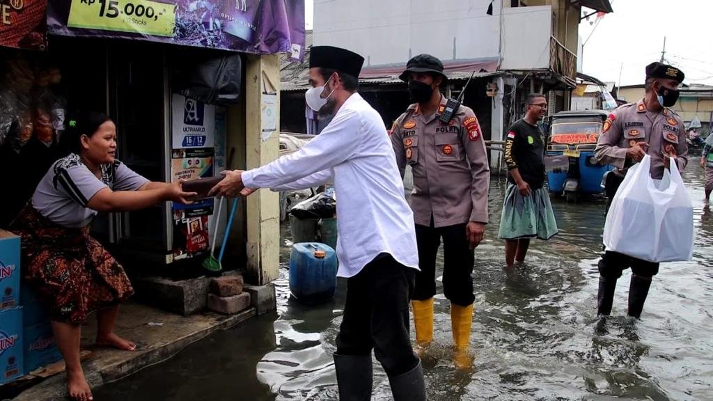 Pemberian nasi kotak siap saji yang kami distribusikan dari Ibu Kapolri kepada masyarakat dan pekerja pelabuhan untuk membantu terdampak banjir rob dan empathy building.” tutur Seto.