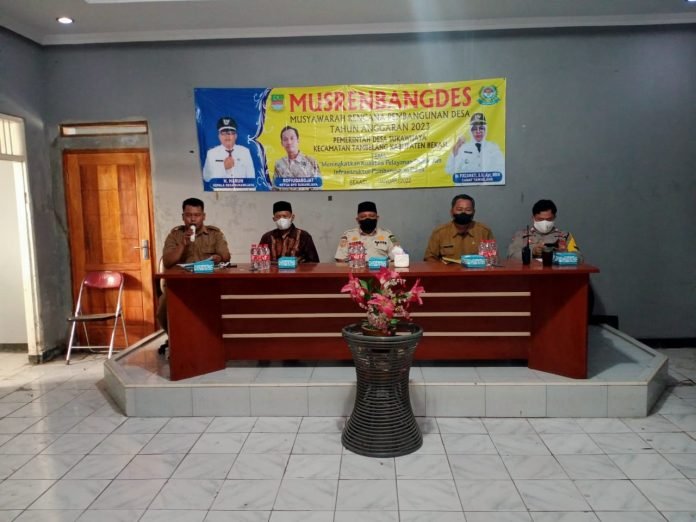 ACTUALNEWS.ID, Bekasi – Polsek Tambelang, Polres Metro Bekasi melalui Bhabinkamtibmas Desa Sukawijaya melaksanakan kegiatan Musyawarah Rencana Pembangunan Desa (MUSRENBANGDES) Sukawijaya di Aula Kantor Desa Sukawijaya, Kampung Balong Gubug Rt. 003/ Rw 001, Desa Sukawijaya, Kecamatan Tambelang, Bekasi, Kamis, (10/01/2022).