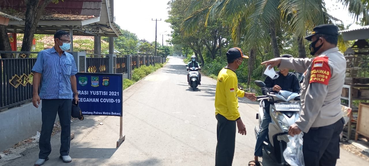 ACTUALNEWS.ID, Bekasi – Polsek Tambelang melaksanakan kegiatan oprasi Yustisi 2021 Penegakan protokol kesehatan pencegahan Covid-19 dalam situasi Pemberlakuan Pembatasan Kegiatan Masyarakat Mikro (PPKM), di wilayah hukum Polsek Tambelang-Polres Metro Bekasi di Jalan Raya Sukawijaya Desa Sukawijaya Kecamatanc Tambelang, Kabupaten Bekasi, Jumat (2/7/2021).