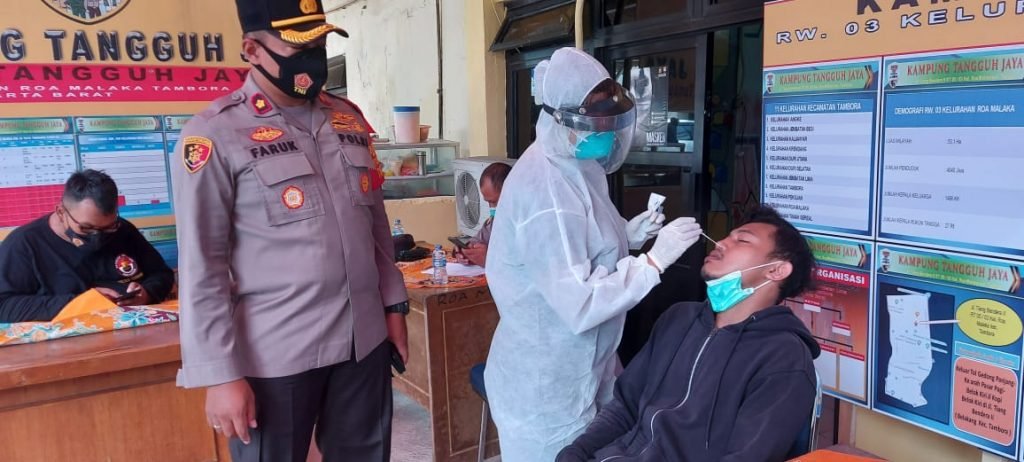 Kapolsek Tambora Kompol Moh Faruk Rozi, SH.SIK.MSI beserta jajaran mencatat ada sebanyak 87 warga yang telah menjalani swab. Alhasil, 1 diantaranya dinyatakan reaktif.