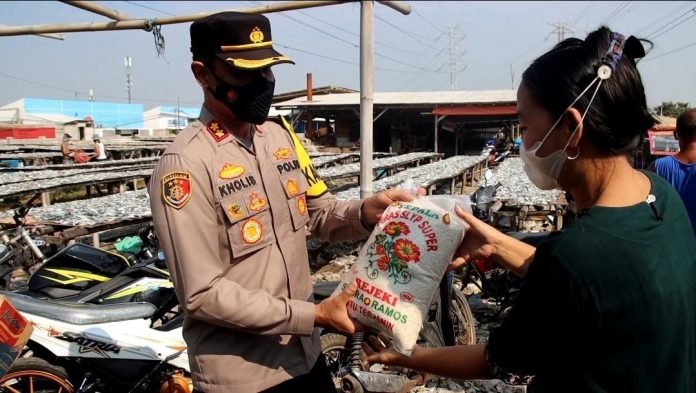 ACTUALNEWS.ID, Jakarta – Polres Pelabuhan Tanjung Priok menyerahkan 277 paket bantuan sosial (bansos) untuk warga sekitar selama Pemberlakuan Pembatasan Kegiatan Masyarakat (PPKM) Darurat.