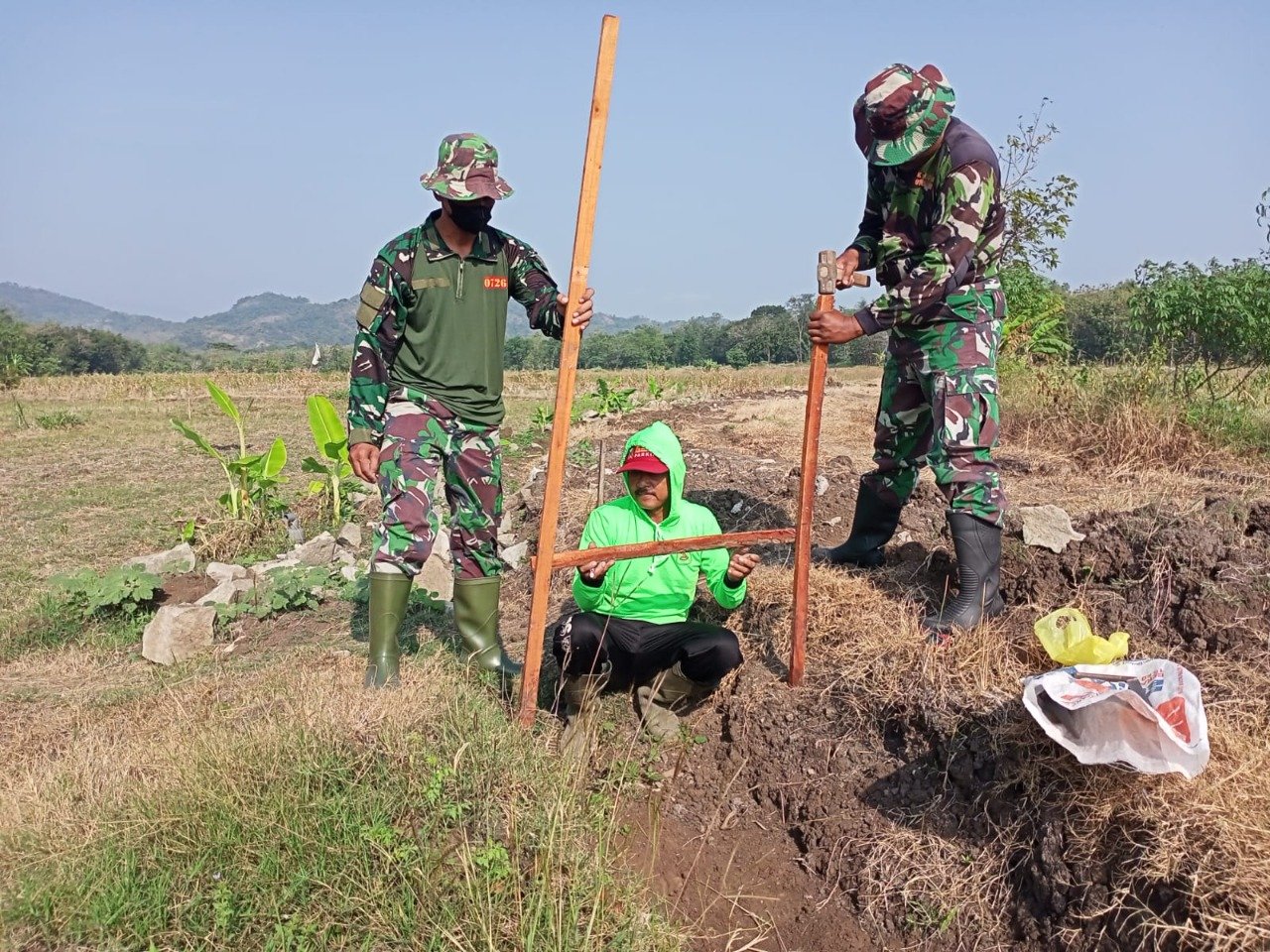 ACTUALNEWS.ID, SUKOHARJO-Kegiatan Pra TNI Manunggal Membangun Desa (TMMD) Sengkuyung Tahap II tahun 2022 Kodim 07626/Sukoharjo sedang berlangsung. Pada kegiatan Pra TMMD di Desa Jangglengan Kecamatan Nguter ini anggota Kodim 0726/Sukoharjo bersama Masyarakat mengerjakan talud jalan Dukuh Kepyar – Dukuh Ngandong sepanjang 393 meter. Rabu (20/07/2022)