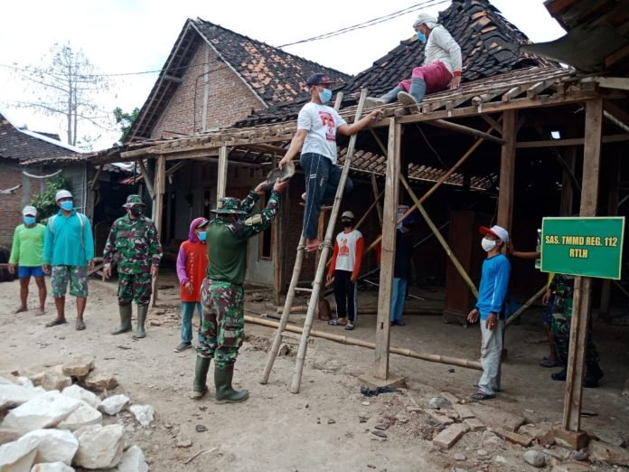 ACTUALNEWS.ID, Sukoharjo – (12/09/21) Perehaban Rumah Tidak Layak Huni (RTLH) merupakan salah satu kegiatan fisik program TMMD yang menjadi unggulan pada TMMD Reguler ke 112 Kodim 0726/Sukoharjo di desa Majasto, Tawangsari, Sukoharjo ini.