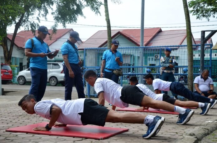 Adapun materi dalam pelaksanaan samapta meliputi Baterai A yaitu Lari 12 menit dan Baterai B yaitu Pull Up, Sit Up, Push Up dan Shuttel Run yang diikuti Personel Militer dan PNS Lanal Dumai.