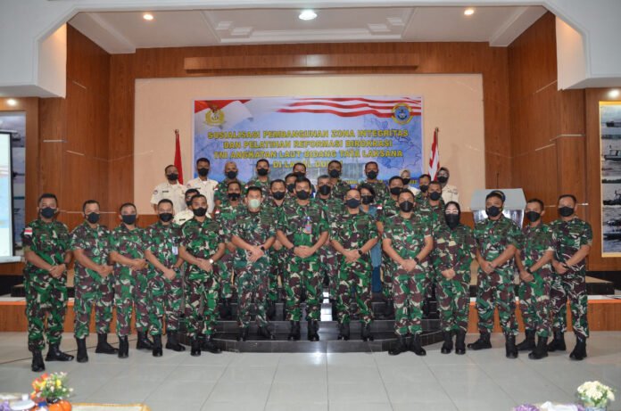 ACTUALNEWS.ID, Dumai – Dalam rangka pembangunan Zona lntegritas dan pemantapan Rerformasi Birokrasi terhadap Satuan kerja TNI AL agar dapat meraih predikat menuju Wilayah Bebas dari Korupsi (WBK)/Wilayah Birokrasi Bersih dan Melayani (WBBM), seluruh Prajurit dan Pegawai Negeri Sipil Lanal Dumai mengikuti kegiatan Sosialisasi Pembangunan Zona lntegritas dan Pelatihan Reformasi Birokrasi TNI AL Bidang Tata Laksana TA 2022, di Gedung Wijaya Kusuma Mako Lanal Dumai, Jalan Yos Soedarso No. 1, Dumai, Kamis (31/03/2022).