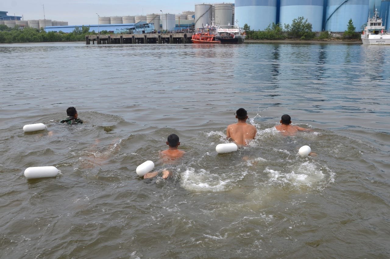 ACTUALNEWS.ID, Dumai,- Dalam rangka mengikuti Penilaian Lanal Teladan Tahun 2022 dan meningkatkan ketangkasan serta menguji kemampuan berenang, Prajurit Lanal Dumai menggelar latihan Renang Militer di Laut. Kegiatan latihan dilaksanakan di Dermaga Navigasi Pelindo Regional I Cabang Dumai, Jumat (24/06/2022).