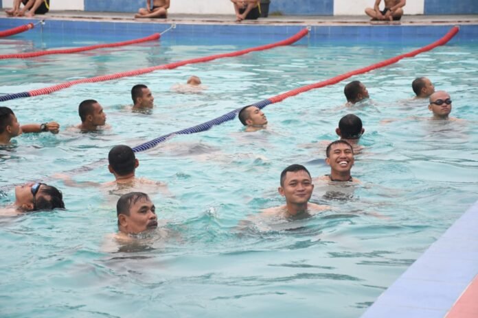 Latihan renang ini merupakan salah satu program pembinaan operasi dan latihan dipimpin Pjs. Pasop Lanal TBA Kapten Laut (P) Juswan Simamora.