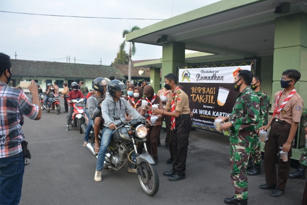 Personel yang terlibat dalam pembagian takjil tersebut diantaranya Perwira Staf, anggota staf serta puluhan anggota Pramuka Saka Wira Kartika Kodim 0824/Jember, yang membagikan 350 bungkus takjil kepada pengendara roda dua yang melintas di Jalan Raya depan Markas Kodim 0824/Jember.