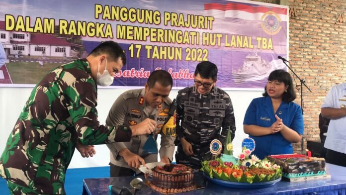 ACTUALNEWS.ID, Tanjung Balai – 18 Maret 2022, Ditengah-tengah perayaan HUT Ke-17 Lanal TBA Tahun 2022, Danlanal TBA Letkol Laut (P) Aan Prana Tuah Sebayang didampingi Ketua Cabang 7 Korcab I DJA I Ny. Elisa Aan Sebayang beserta Seluruh Prajurit Lanal TBA mendapat kejutan dari Forkopimda Asahan diantaranya, Wakil Bupati Asahan Taufik Zainal Abidin, S.Sos., M.Si., Kapolres Asahan AKBP Putu Yuda Prawira, Dandim 0208/AS Letkol Inf Franki Susanto, S.E.