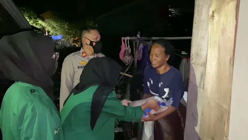 Rangkul Mahasiswa, Polsek Kep. Seribu Utara Bagikan Bansos Malam Hari