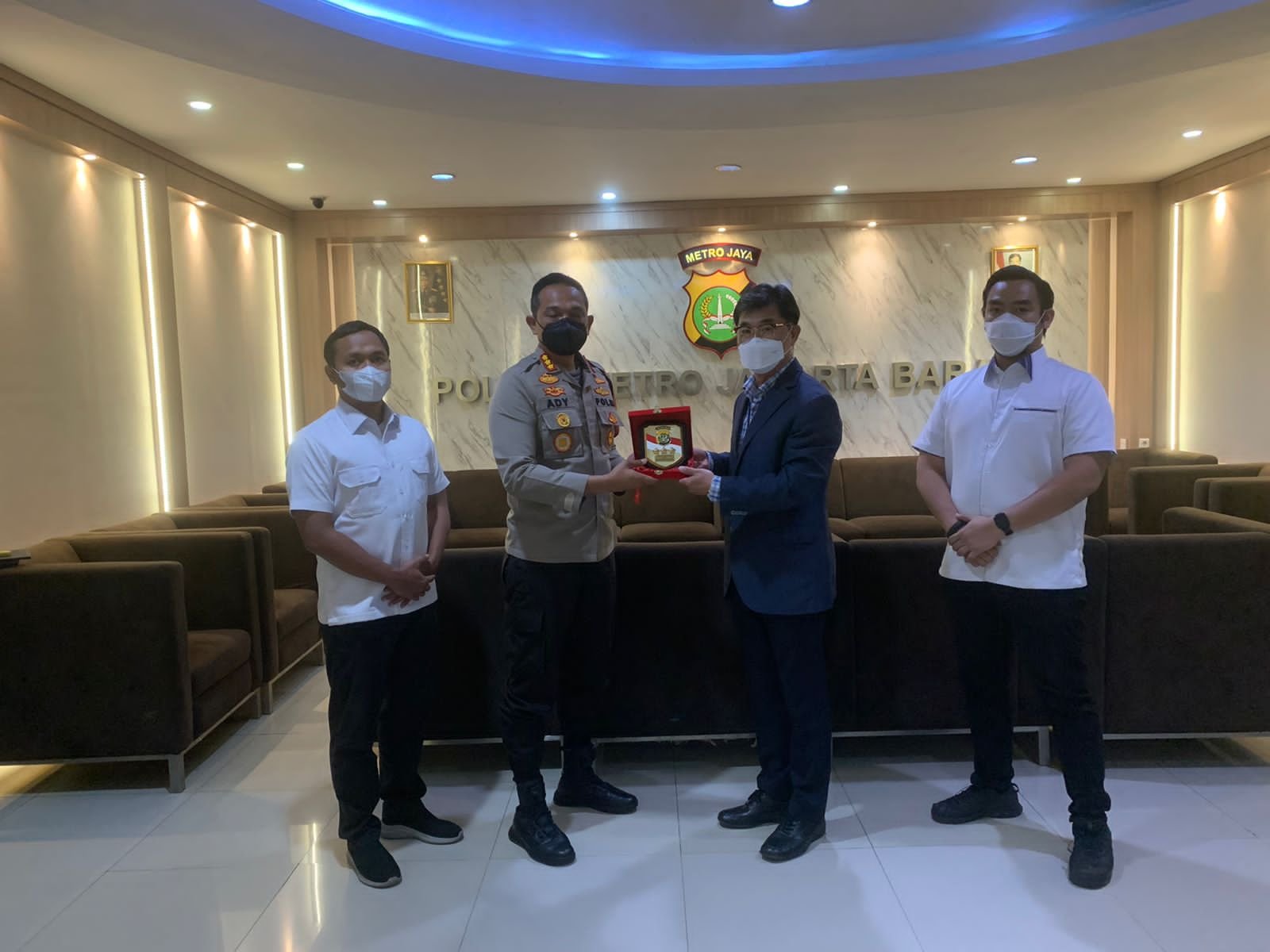 Setelah beramah tamah kemudian tampak terlihat pihak kedubes Korea Selatan kemudian memberikan sertifikat penghargaan yang diwakili oleh Kapolres Metro Jakarta Barat Kombes Pol Ady Wibowo didampingi oleh Kasat Reskrim Polres Metro Jakarta Barat Kompol Joko Dwi Harsono